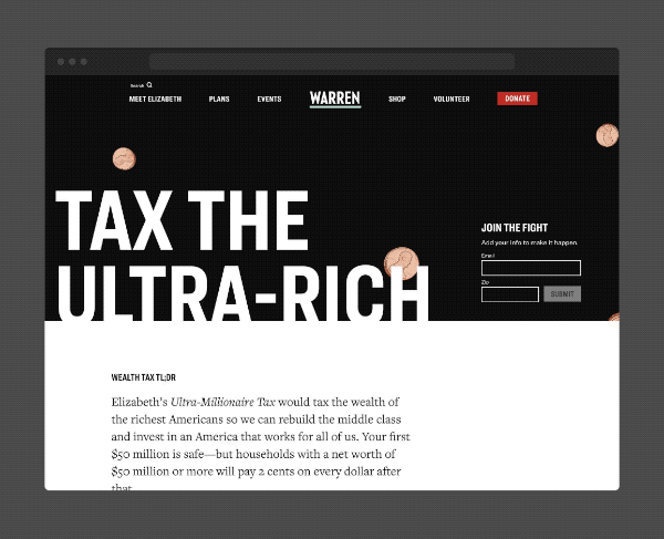 The Wealth Tax is one of the core tenants to Senator Warren’s campaign and while many people might have heard the two cent chant, they don’t know how life-changing it will be for every American. It was written for non political folks to understand this big, systemic topic without jargon that makes eyes roll. This experience tells the story of wealth inequality with a particularly game changing data viz section on the wealth gap.